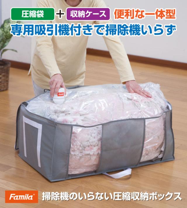 圧縮袋 収納ボックス 一体化 布団収納袋 衣類収納 ファミラ 掃除機のいらない圧縮収納ボックス 吸引機付き 9点セット 布団圧縮袋 ふとん収納袋 収納ケース 圧縮袋セット 衣替え クローゼット収納 送料無料