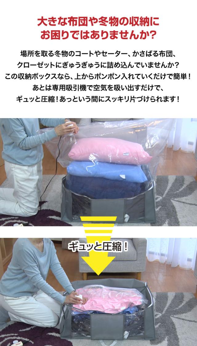 圧縮袋と収納ボックスが一体化した、超便利アイテム!