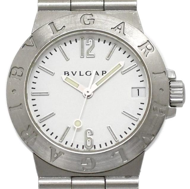 ブルガリ 腕時計 ディアゴノ スポーツ f-22537 ホワイト シルバー LV29S 美品 レディース SS 中古 クオーツ D83** BVLGARI 女性 時計 白文字盤 日付 QZ シンプル 電池式 アナログ 可動品 ロゴ 電池交換済み 銀色 白文字盤 ブランド 本物 鑑定済み