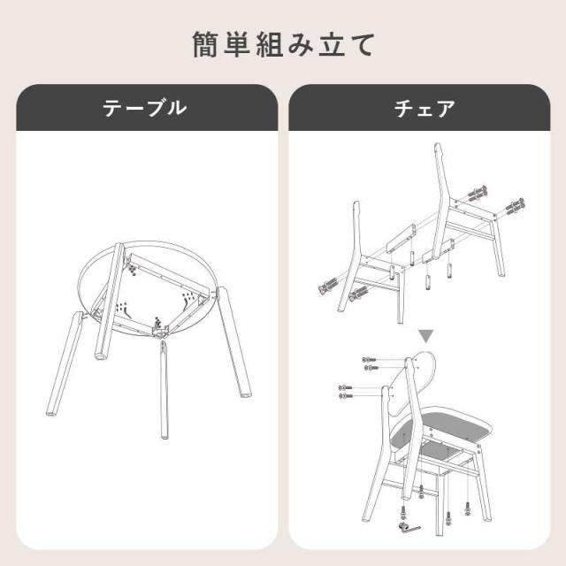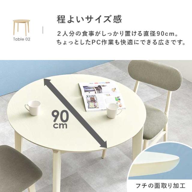 丸いフォルムが可愛いダイニングセット。食事や作業でも使いやすいサイズ感です。