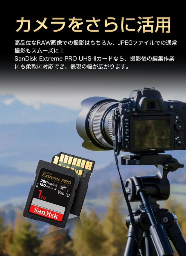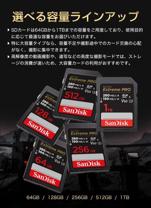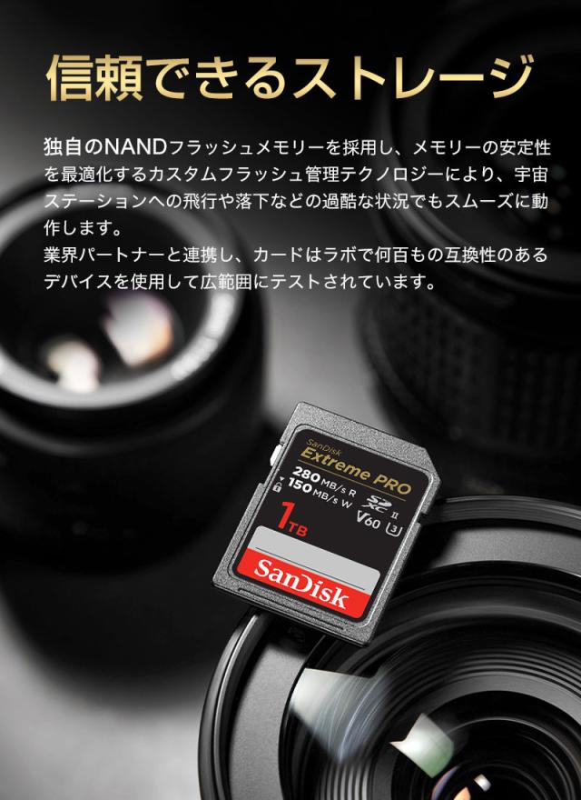 SDカード 1TB SanDisk Extreme PRO SDXCカード UHS-II U3 V60 6K 4K R:280MB/s W:150MB/s SDSDXEP-1T00-GN4IN 海外パッケージ 宅配便配送 sdxc カード 1tb ポイント消化