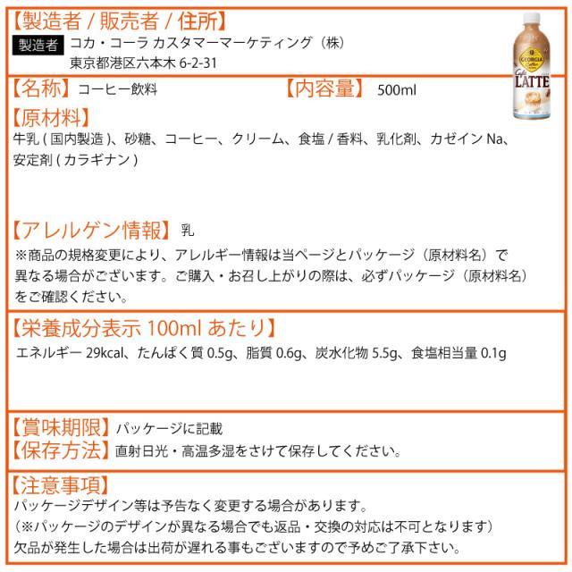 ジョージア カフェラテ 500ml 24本 (24本×1ケース) PET 安心のメーカー直送 送料無料