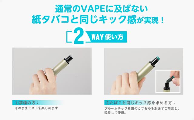 ・たばこ葉が詰まったプルームテックカプセルに使用できるので、通常のVAPEに及ばない強いキック感が実現!禁煙の方はカプセルなしでそのままミストも楽しめます。