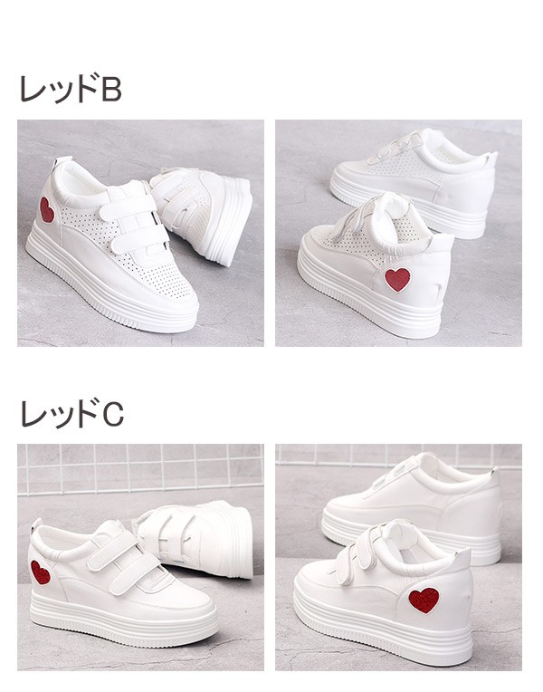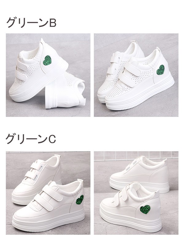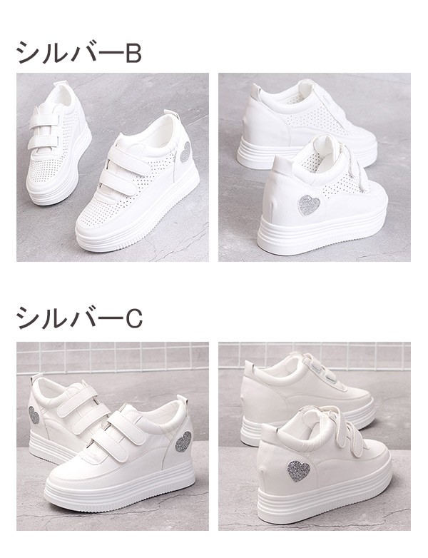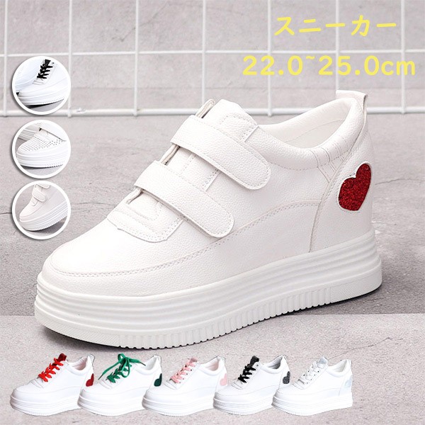 スニーカー レディース 厚底 3type 白い靴 身長アップ レースアップ ベルクロ インソール 総ヒール8 通気性 韓国風 トレンディ カジュアル 学生 通勤 通学 22.0 22.5 23.0 23.5 24.0 24.5 25.0