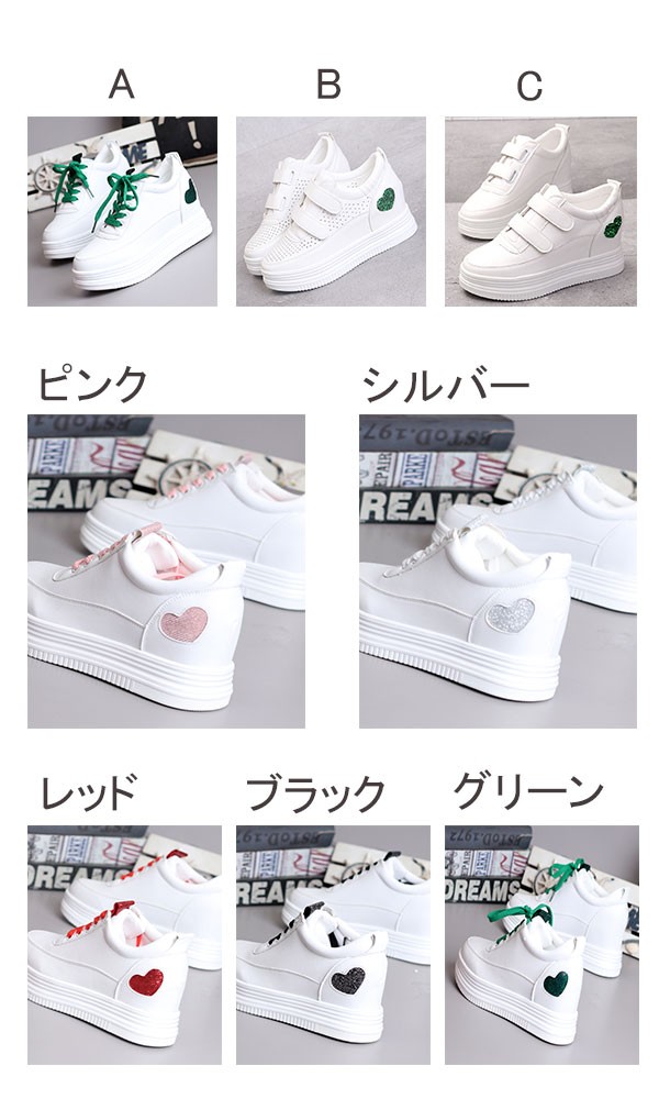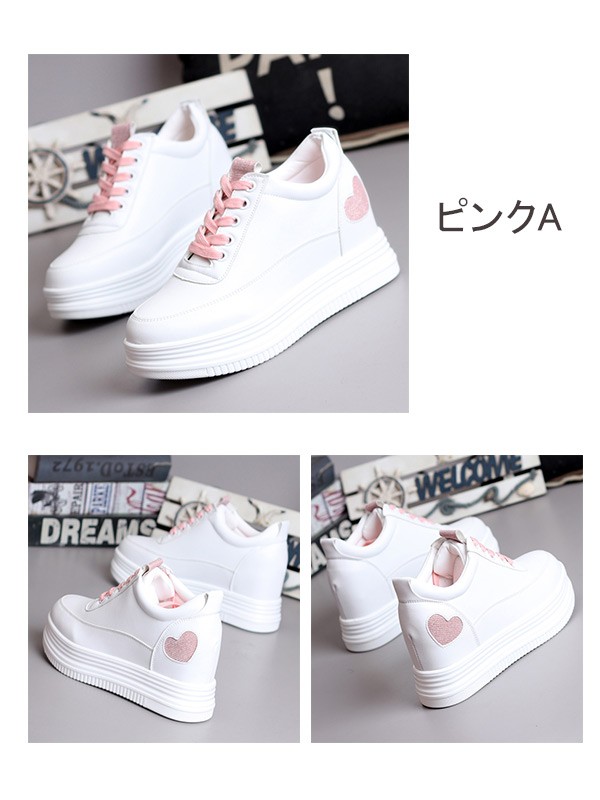スニーカー レディース 厚底 3type 白い靴 身長アップ レースアップ ベルクロ インソール 総ヒール8 通気性 韓国風 トレンディ カジュアル 学生 通勤 通学 22.0 22.5 23.0 23.5 24.0 24.5 25.0 di082m5