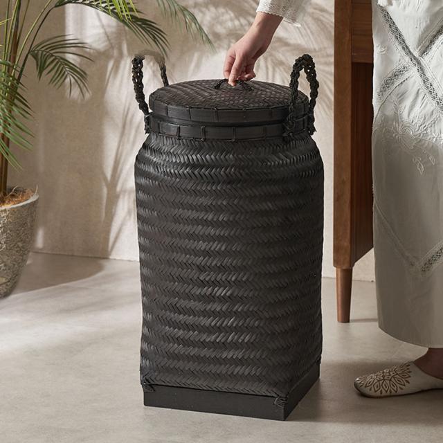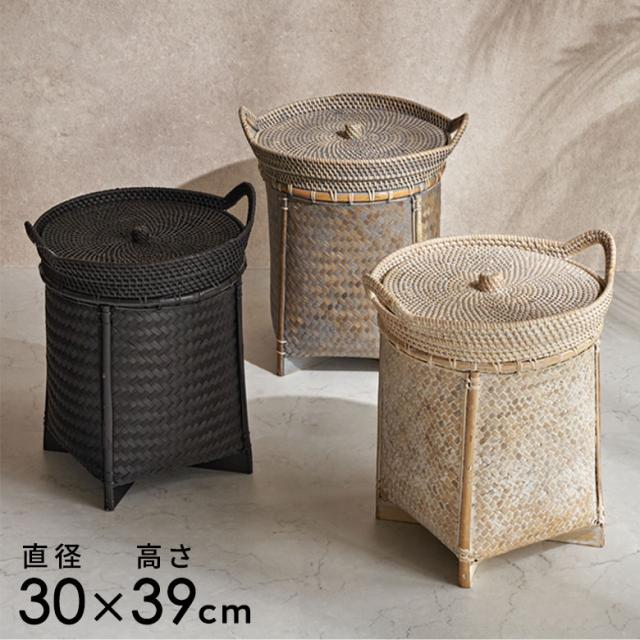 バスケット かご 約 37L バンブー 竹 深型 ふた 持ち手 ハンドル 付き おもちゃ 入れ 収納 ごみ箱 ダストボックス 店舗 レストラン カフェ 14145