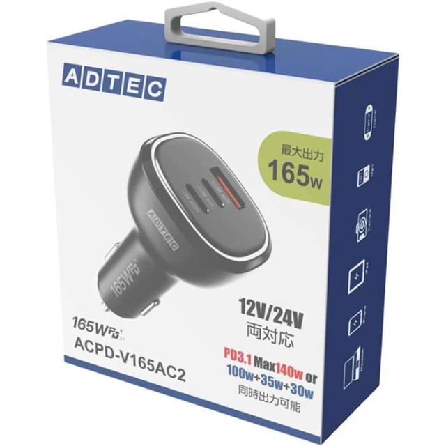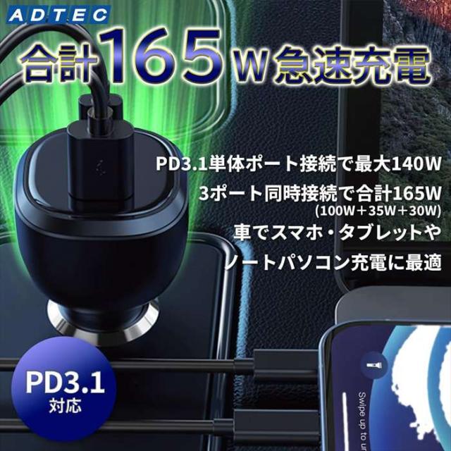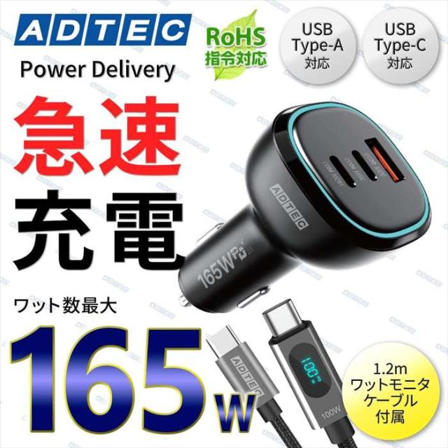 シガーソケット PD充電器 1.2m ケーブル 充電器 急速充電 ADTEC ACPD-V165AC2-wC12U2L