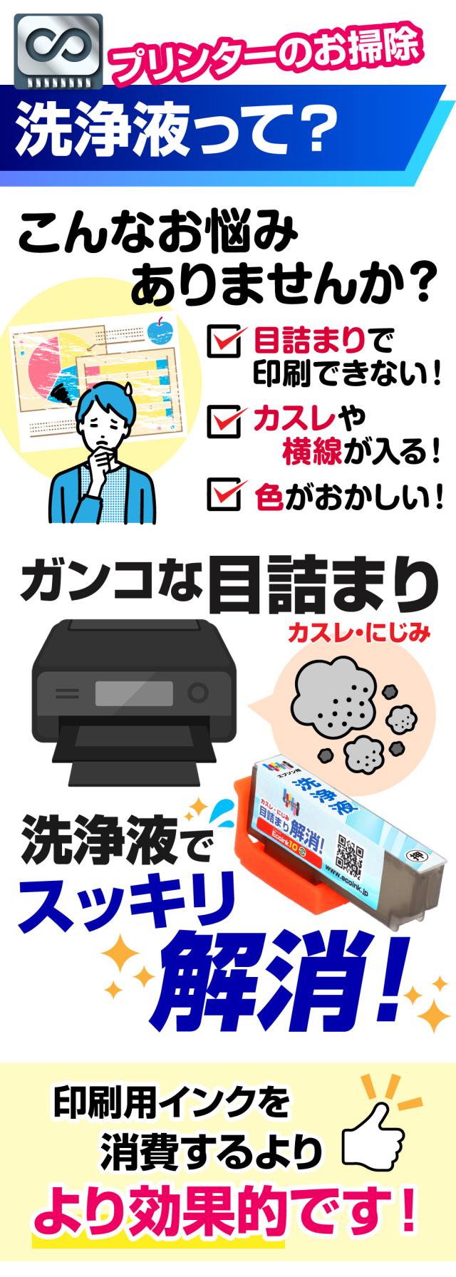 | インクの目詰まりやカスレを洗浄解消する、繰り返し使える永久ICチップ付きの洗浄液カートリッジです。 | |