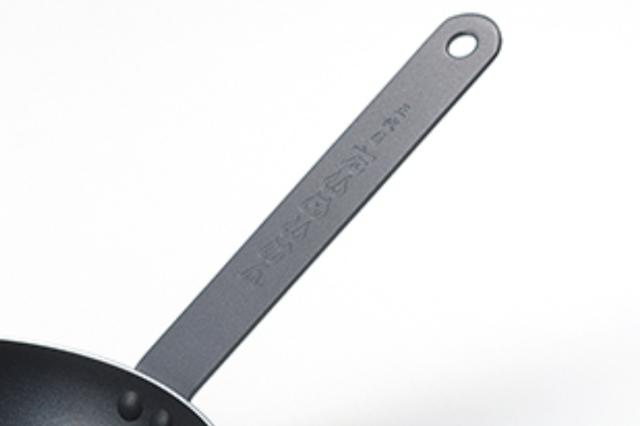 普段使いに丁度いい、機能性を兼ね備えたフライパンのハンドルには「たいめいけん」のロゴが刻まれています。プロと同じ丈夫な鉄製ハンドルです。