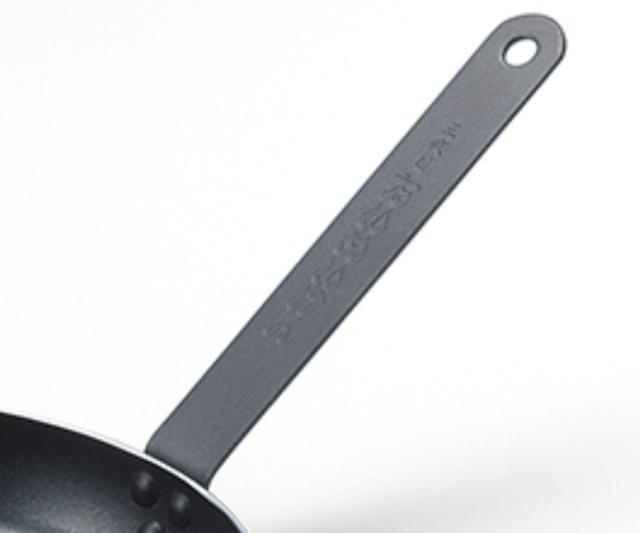 普段使いに丁度いい、機能性を兼ね備えたフライパンのハンドルには「たいめいけん」のロゴが刻まれています。プロと同じ丈夫な鉄製ハンドルです。