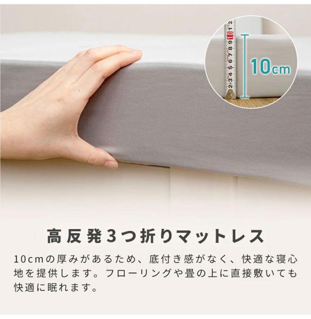 10cmの厚みがあるため、底付き感がなく、快適な寝心地を提供します。