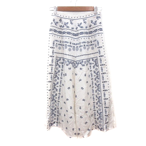 【中古】エミ アトリエ emmi atelier ワイドパンツ スカンツ 花柄 麻混 リネン混 0 XS 白 アイボリー /MN レディース