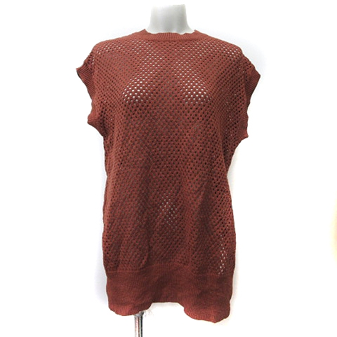 【中古】センスオブプレイス バイ アーバンリサーチ チュニック 透かし編み フレンチスリーブ 麻混 リネン混 ONE 茶