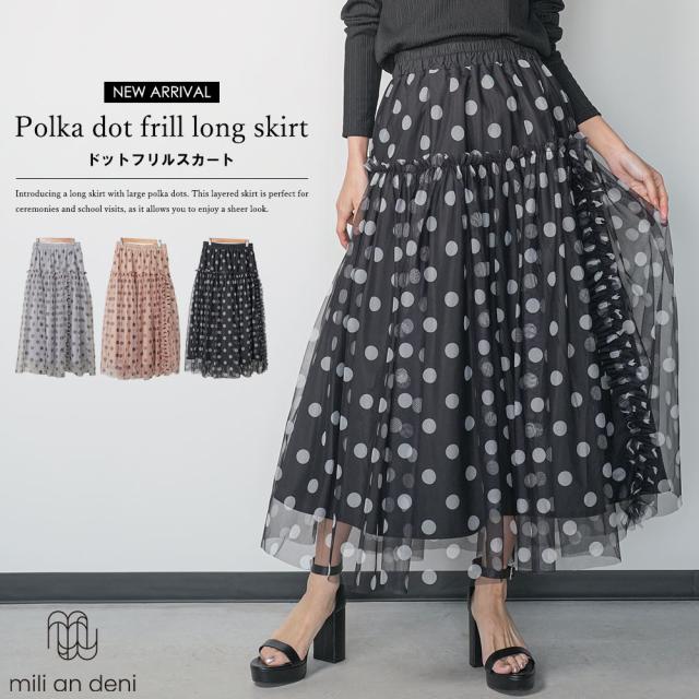 春新作 ドットフリルスカート ロングスカート ロング丈 M ボトム レディース 卒業式 入学式 春夏 ミリアンデニ メール便(郵3)対応 p193095