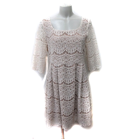 【中古】インデックス INDEX ワンピース ミニ 七分袖 総レース M ベージュ /YI レディース