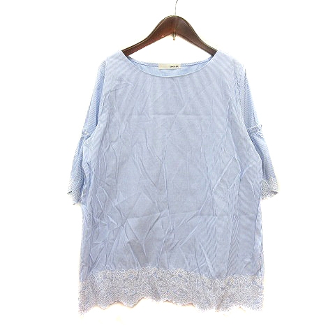 【中古】シューラルー SHOO・LA・RUE チュニック ブラウス ストライプ 刺繍 長袖 L 水色 ライトブルー /MN レディース