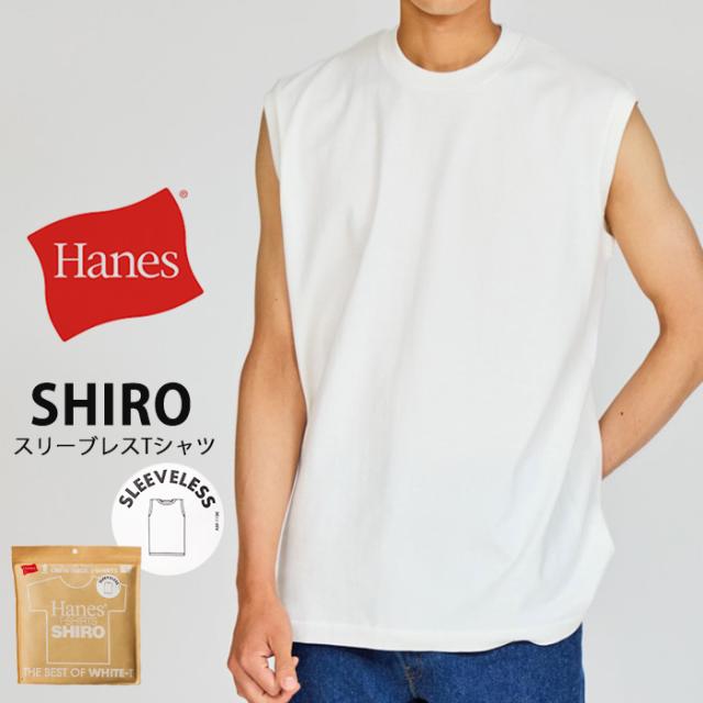 Hanes SHIRO ヘインズ シロ スリーブレス Tシャツ ノースリーブ カットソー アンダーウェア インナー tシャツ HM3-B201 無地 白 ホワイト ブランド パックT メンズ 綿100% 袖なし プレゼント