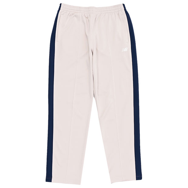 吸汗速乾性に優れたダブルニットを使用したトラックパンツ。程よいゆとりとフィット感のストレートシルエット。フロントのピンタック、左腿のNBロゴ刺繍、サイドラインテープがデザインポイント。