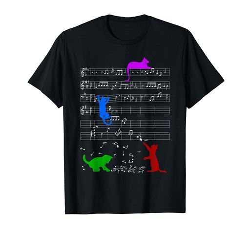 かわいい色の猫 音符 ミュージシャン 音記号 ピアノ Tシャツ