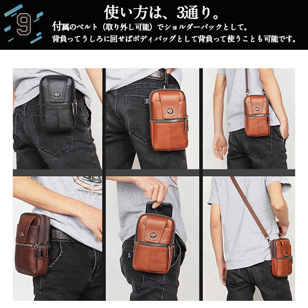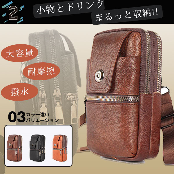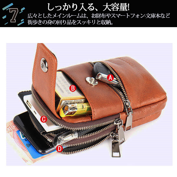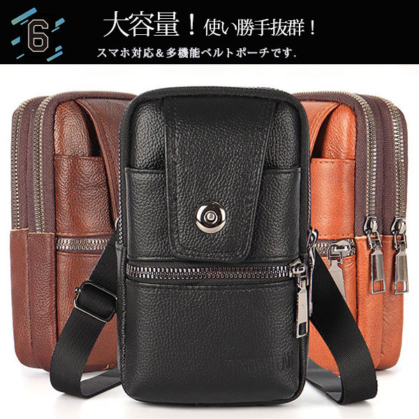ポイント超超祭 スマホバック ウエストバック メンズ 牛革 ベルトポーチ ショルダーポーチ 多機能 大容量 コンパクト 携帯収納 お出掛け アウトドア 登山 スポーツ 父の日