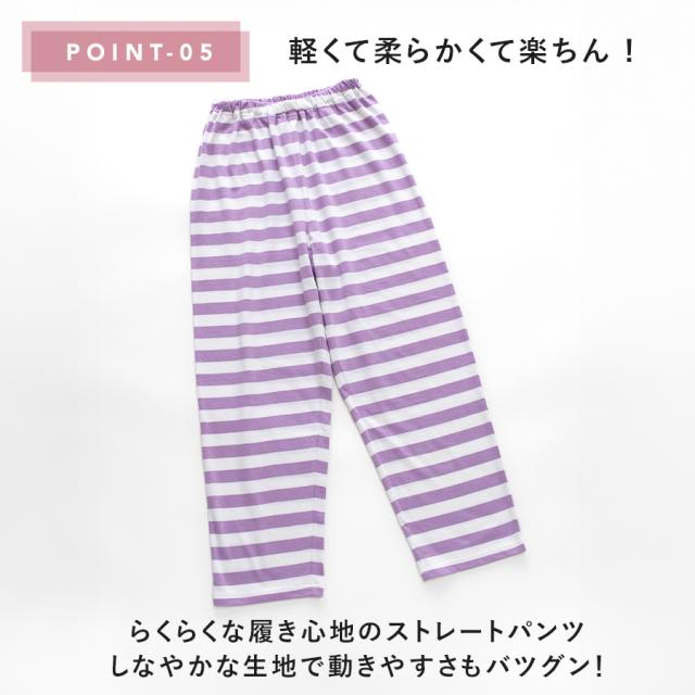 薄手のTシャツ生地で、柔らかい風合いが爽やかで心地よいパジャマです。