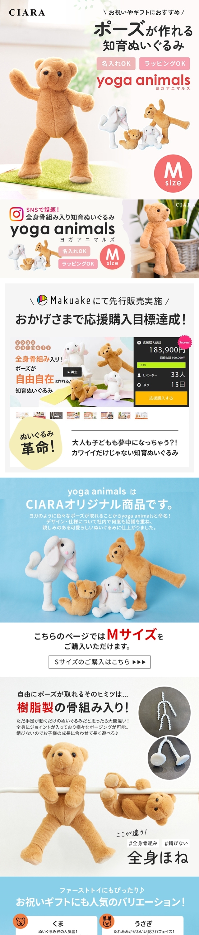 ヨガアニマルズ 知育ぬいぐるみ 知育玩具 知育おもちゃ ぬいぐるみ テディベア くま クマ 熊 うさぎ ウサギ 兎 名入れ ラッピング 骨組み 骨組み入り シニア 介護 ベビー キッズ 男の子 女の子 男女兼用 おしゃれ かわいい 可愛い シンプル 0歳 1歳 2歳 3歳 4歳 5歳 兄弟 姉妹 幼稚園 保育園 新生児 子ども こども 子供 赤ちゃん 大人 年賀状 撮影 100日祝い 百日祝い こどもの日 お宮参り バレンタインデー ホワイトデー お返し クリスマス 春 夏 秋 冬 オールシーズン キッズ用帽子 セール 1月 2月 3月 4月 5月 6月 7月 8月 9月 10月 11月 12月 お得 ポイント消化 福袋 プレゼント プチギフト プレゼント交換 ギフト 新生活 CIARAポーチ雑貨屋 シアラ OEM 大量注文 ネスリーフ 2025 遅れてごめんね