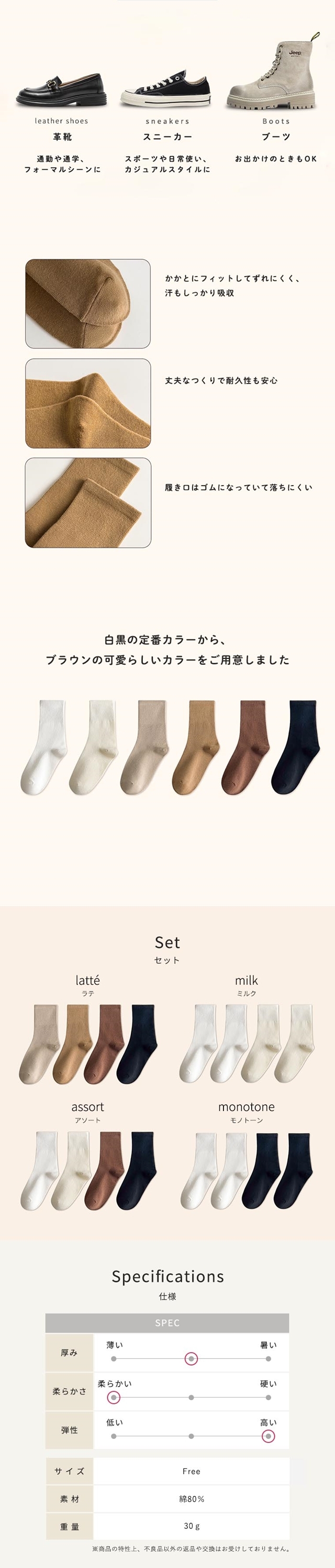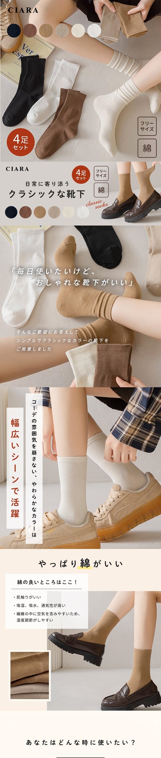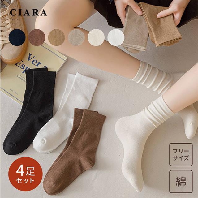 靴下 レディース くつ下 おしゃれ かわいい 4足セット 厚手 無地 シンプル 大人 ブラウン ベージュ ソックス セット 男女兼用 メンズ クルー丈 綿 冠婚葬祭 カジュアル プレゼント ギフト 春 新作