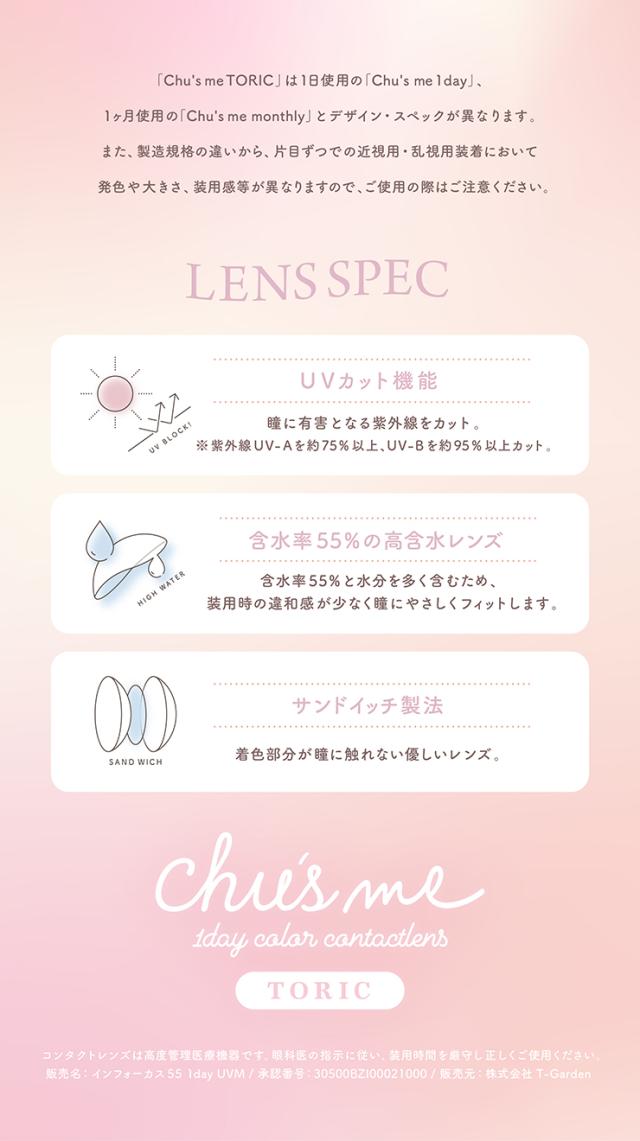 【メーカー公式】【メール便送料無料】Chu’s me TORIC 1day (10枚入り)(チューズミー トーリック ワンデー) ゆうこす カラコン カラーコンタクト 乱視用【当日発送】