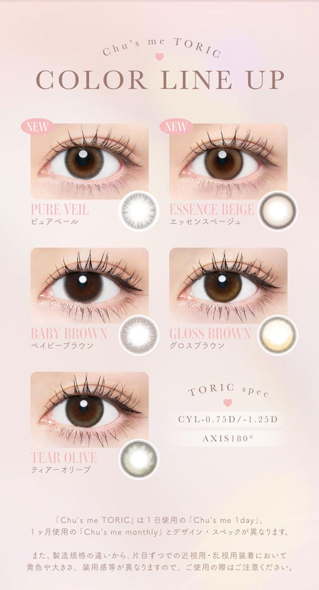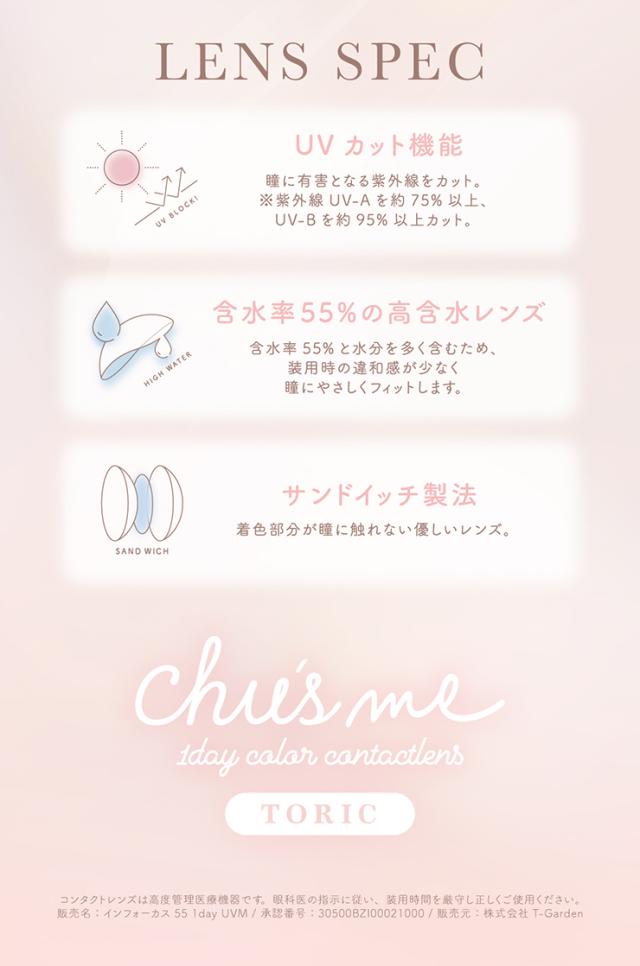 【メーカー公式】【メール便送料無料】Chu’s me TORIC 1day (10枚入り)(チューズミー トーリック ワンデー) ゆうこす カラコン カラーコンタクト 乱視用【当日発送】