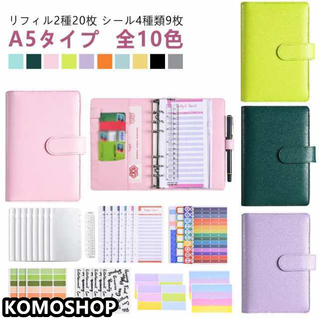 | A5タイプ 家計簿ポーチ リフィル2種20枚 シール4種類9枚 全10色 *家計管理に 贅沢な収納力! おしゃれなお金の管理ファイル* こんなお悩みありませんか? お金の管理をわかりやすく簡単にしたい 家計簿をつけて節約にチャレンジしたいが 面倒になって挫折してしまう 通帳やカード支払証明など大事なものの保管場所がバラバラで整理できない ●大事な本体は家に置いたまま必要なリフィルのみ持ち運び可能! スライドジップ付きでクリアポケットだけの持ち運びもOK! ●たっぷり15枚の チャック付きリフィル ジッパー付きのクリアリフィルが75枚も入っているので、 用途に合わせてお札を分けたい方に◎お札、通帳・レシートなどを すっきり収納! ●クリアポケットとシールで仕分けがしやすい簡単管理! 中身が見えるのでお金の管理が分かりやすくやりくり、節約が簡単♪ ●豊富な収納ポケット 4つのカードポケットと2つの大きめポケット! 大きめポケットには通帳の収納も可能です。 6箇所の収納ポケットとバインダー、ペンホルダー付きでとっても便利 ●カラフルなラベリングシールで アレンジ自由自在 ●ペンホルダー付きで いつでも書き込みできる 手帳感覚でペンごと持ち運べる。レシートなどに書き込むときに使用が可能! ●選べる10カラー 全10カラー!あなたのお好みのポーチがきっと見つかります! 紙幣が出し入れしやすい ★A6サイズ お札のみだとこちらがオススメ! | |
