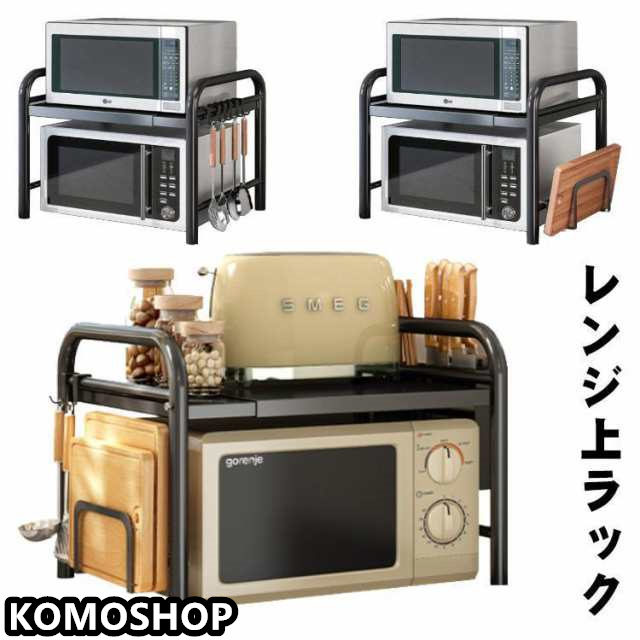 ホワイト 電子レンジラック レンジ上ラック 2段式 幅40?70cm 高さ調整可能 ラック オーブンレンジラック レンジ上 レンジラック キッチン収