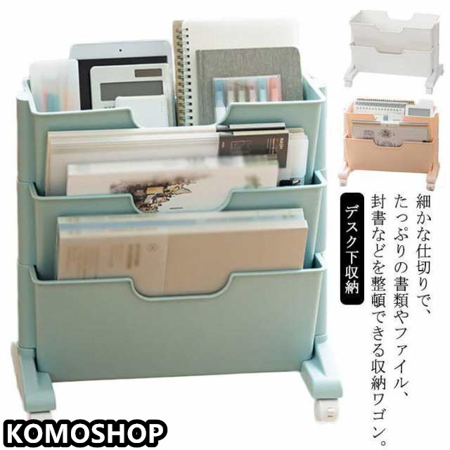 ファイルワゴン キャスター付 デスク下収納 2段 3段 斜め棚 仕切り オフィス デスク下 机下 ファイル 収納ラック 本棚 取り出しやすい A4 書