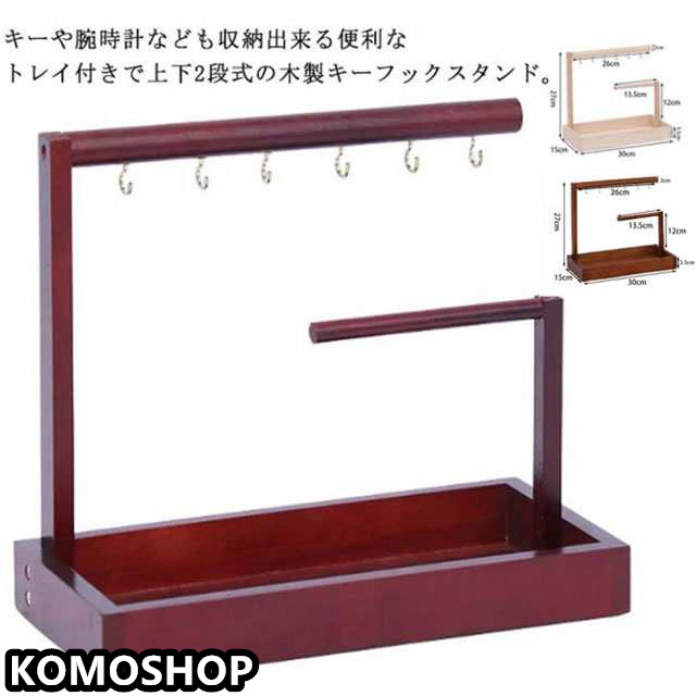 鍵かけ キーフック 木製 2段 スリム 玄関用 トレー 小物入れ キースタンド 卓上収納 木目調 キー置き 腕時計置き メガネ置き 鍵置き アクセサリー収納 おしゃれ 北欧 シンプル 卓上 インテリア
