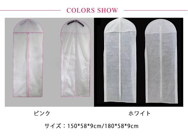 ドレス収納カバー 収納バッグ ドレスカバー 衣装カバー ガーメントバッグ 150cm 180cm 収納袋 不織布 手提げ付き 持ち手付き バッグ型 肩掛け ファスナー 持ち運び ポータブル 移動 シンプル ロングドレス パーティードレス