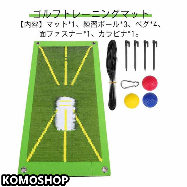 | ゴルフトレーニングマット【内容】マット*1、練習ボール*3、ペグ*4、面ファスナー*1、カラビナ*1。 【スイングの跡が残るターフマット】思った通りにボールが飛ばない、改善しようと思ってもどうしていいかわからない。そんなお悩みを解決できる正しいスイングでボールをまっすぐ飛ばすためのゴルフ練習スイングマットです。 【スイング跡で自分のショットを分析】スイングの軌跡が残るので自身でショットの癖を分析できます。素振りの練習にも効果的です。 【ショット分析に役立つ様々な目印】クラブ、ボールの置き場所、ティーポイント、打撃方向などのラインなどの目印が付いているので、距離感や入射角、インパクトの強さも調整がしやすい仕様です。 【使う場所を選ばない小さなサイズ】コンパクトサイズなので持ち運びに便利です。自宅、オフィス、裏庭などのどこでも快適にゴルフの練習ができます。 【ゴム底】ゴム製の底は地面にしっかりと固定されているため、マットが滑ることがなく、安心してご使用いただけます。 | |