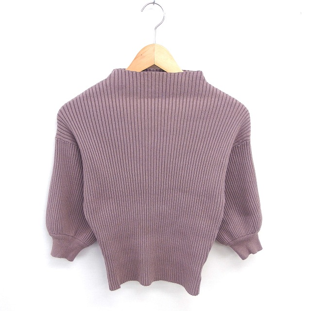 【中古】フレンチパヴェ FRENCH PAVE ニット セーター ハイネック リブニット 五分袖 茶 モカブラウン /TT レディース