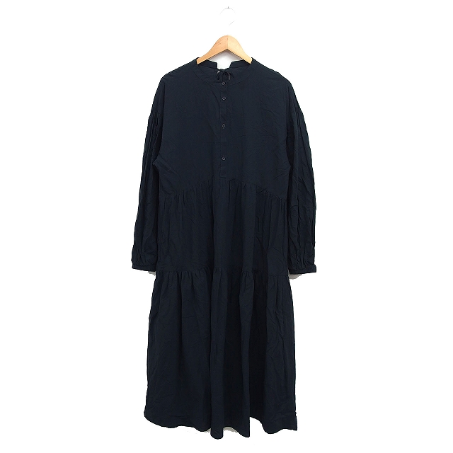 【中古】クラシカルエルフ CLASSICAL ELF ティアード ワンピース 長袖 ロング丈 無地 コットン 綿 XL ブラック系 /FT2