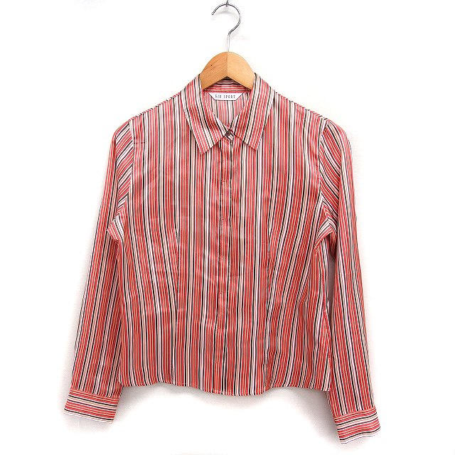 【中古】ジオスポーツ GIO SPORT 配色ストライプ シャツ ブラウス 長袖 光沢 2 ピンク系 /FT19 レディース