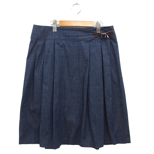 【中古】キース KEITH タック スカート フレア ロング ベルト レザー コットン混 大きいサイズ 無地 46 紺 ネイビー