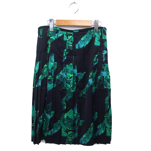 【中古】デプレ DES PRES トゥモローランド プリーツ スカート フレア ロング 透け感 サイドジップ 1 黒 ブラック 緑