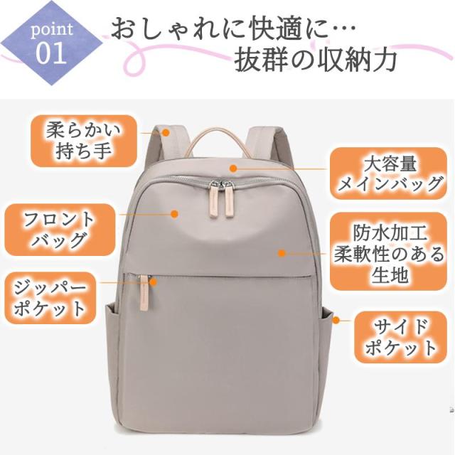 シンプルながらも洗練されたデザインで、使い勝手の良さを追求したおしゃれなリュックです。