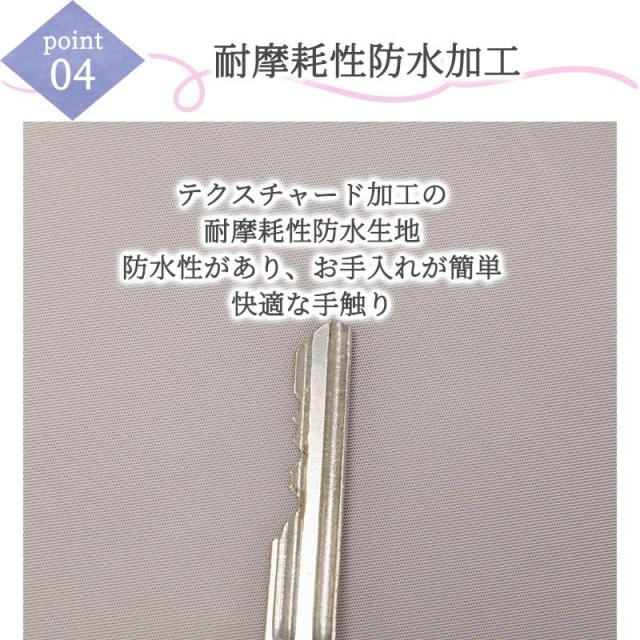 ?防水加工の柔軟性のある生地: テクスチャード加工で耐摩耗性?防水性に優れた柔らかい生地を採用。雨の日でも安心して使え、お手入れが簡単です。