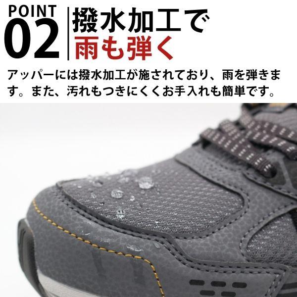 アッパーには撥水加工が施されており、雨の日でも水を弾きます。また汚れにくくお手入れも簡単です。