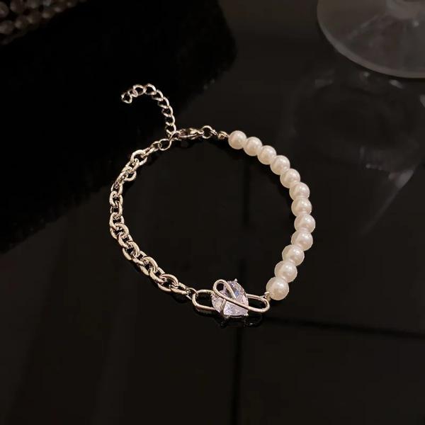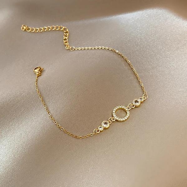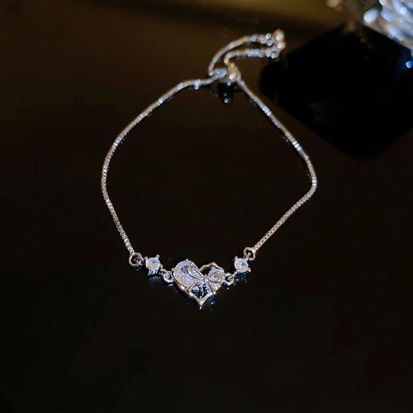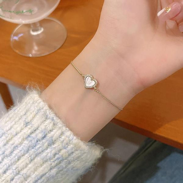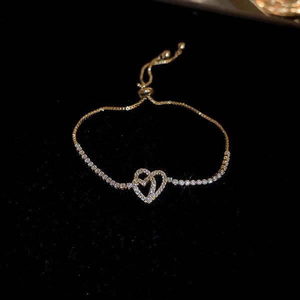女性のためのゴールドカラーのハートブレスレット 韓国の甘いシンプルなデザイン マイクロラインストーン パーティージュエリー 2023