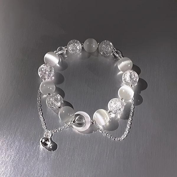 韓国スタイルホワイトビーズムーンブレスレット女性のためのヴィンテージグラデーションクリスタルガラス惑星ブレスレット絶妙なパーティージュエリーギフト