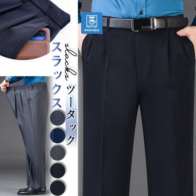スラックス ツータック ビジネスパンツ メンズ 洗える パンツ 大きいサイズ オールシーズン スリム ブラック 紳士 ネイビー 春 夏 新生活
