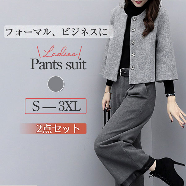 パンツ セットアップ レディース 2点セット 秋冬 40代 ワイドパンツ フォーマル セレモニー 入園式 卒業式 オフィス 通勤 OL お出かけ