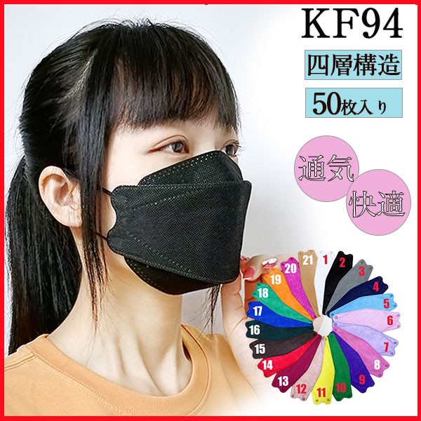 マスク KF94 50枚入り カラフル 使い捨て 4層構造 不織布 3D立体 柳葉型 韓国 男女兼用 おしゃれ 感染予防 大人用 小顔効果 可愛い
