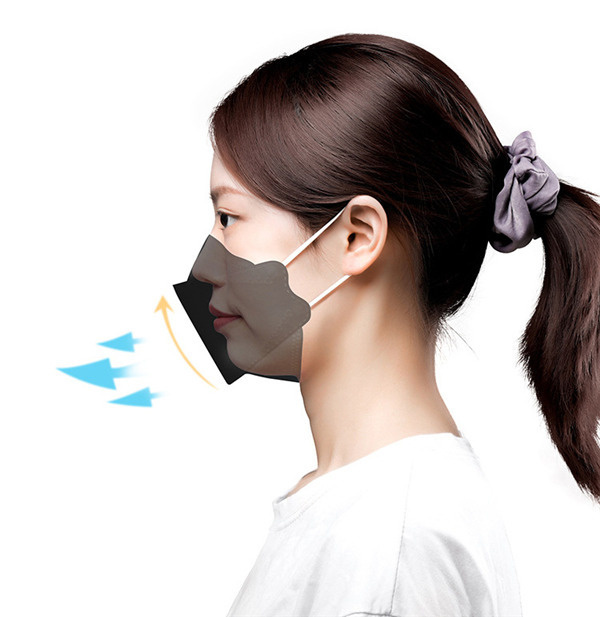 口元を守る立体構造で息苦しくなりにくく、口紅なども付きにくい。