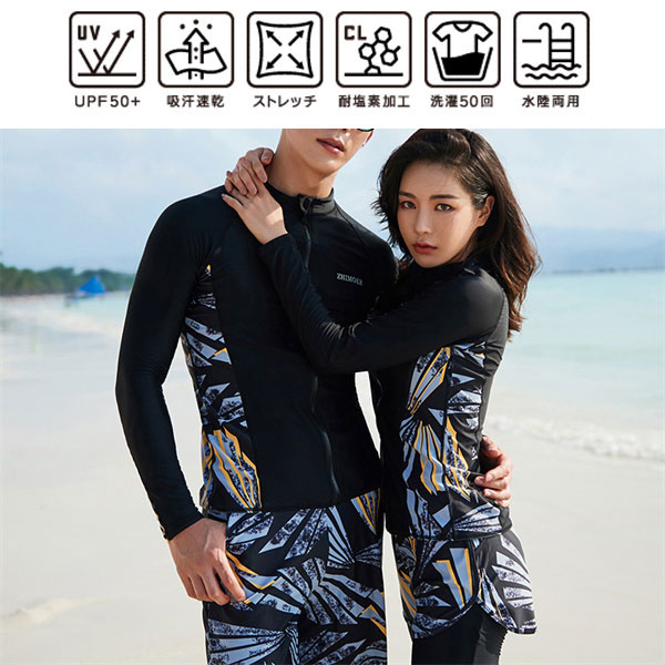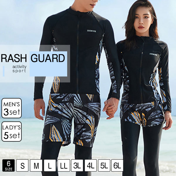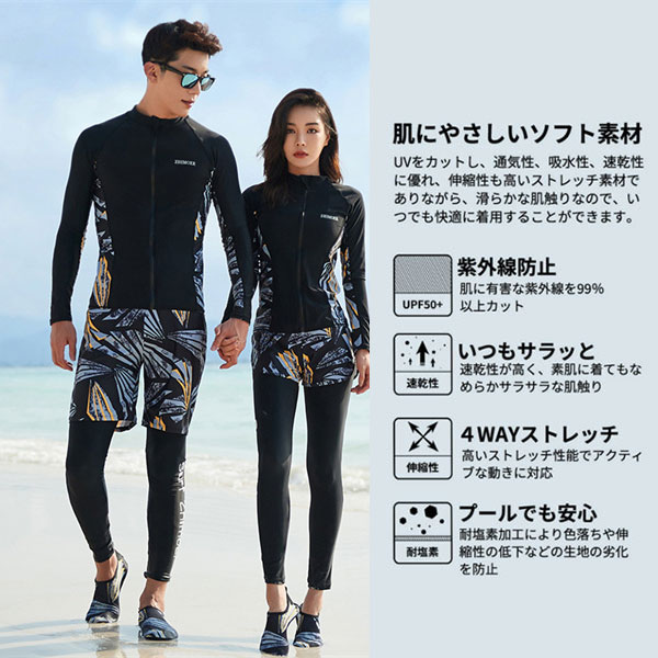 ラッシュガード 水着 レディース メンズ ペア カップル 長袖 ペアルック 上下 セット ウェットスーツ セットアップ サーフパンツ UVカット